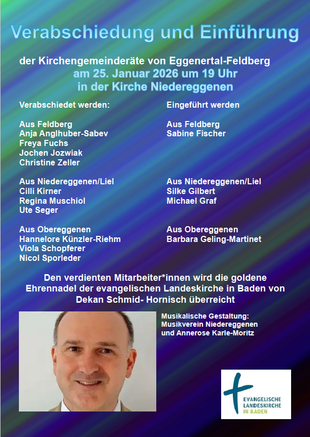 Die evangelische Kirchengemeinde Eggenertal-Feldberg besteht aus den 3 Hauptorten Niedereggenen, Obereggenen und Feldberg. Dazu kommen noch Gennenbach, Liel, Schallsingen und Rheintal.